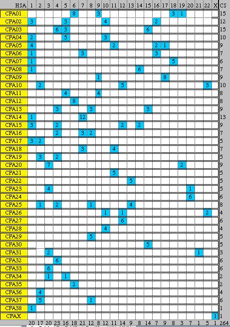 sqares. Number of CS is indicated in the square. The total of CS > 500